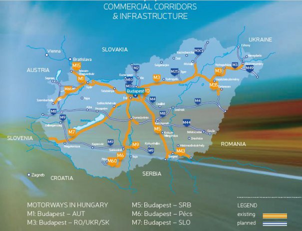 Pe lângă poziţia geografică mai avatajoasă pentru statul ungar, ţara vecină a ştiut să îşi susţină interesele mult mai clar decât România. Să luăm în calcul doar faptul că, în timp ce guvernul nostru încă nu pare a da importanţa meritată infrastructurii, noi având doar 770 km de autostradă, Ungaria se apropie de 2.000 km.