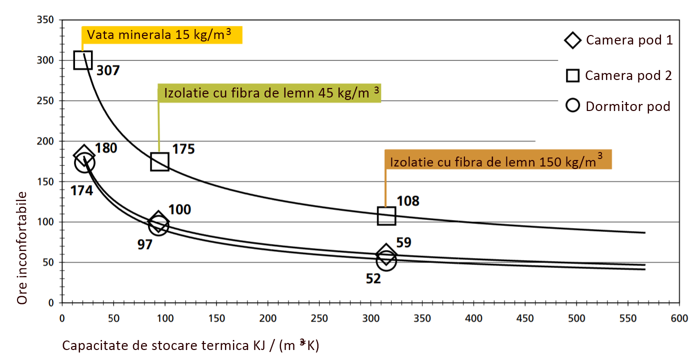 Folosind exemplul unui dormitor dintr-o casă, suntem capabili să reducem „orele incomode” cu 50%! Cum? Schimbând vata minerală cu izolatia din fibre de lemn. Mai simplu spus, se transpira mult mai puțin.