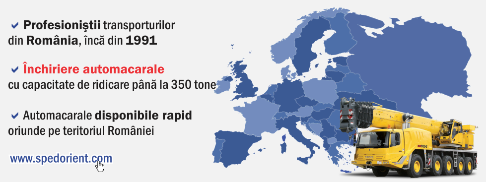 O companie de încredere care te poate ajuta cu serviciul de închirieri macarale este Orient SRL din Rădăuți, județul Suceava. Societatea dispune de un număr de peste 20 de macarale cu capacitate de încărcare/ descărcare cuprinse între 10 și 350 tone. Aceste utilaje includ mașini cu sisteme adaptabile oricăror genuri de lucrări, indiferent de greutatea lor. Macaralele se pot închiria oriunde pe teritoriul țării.