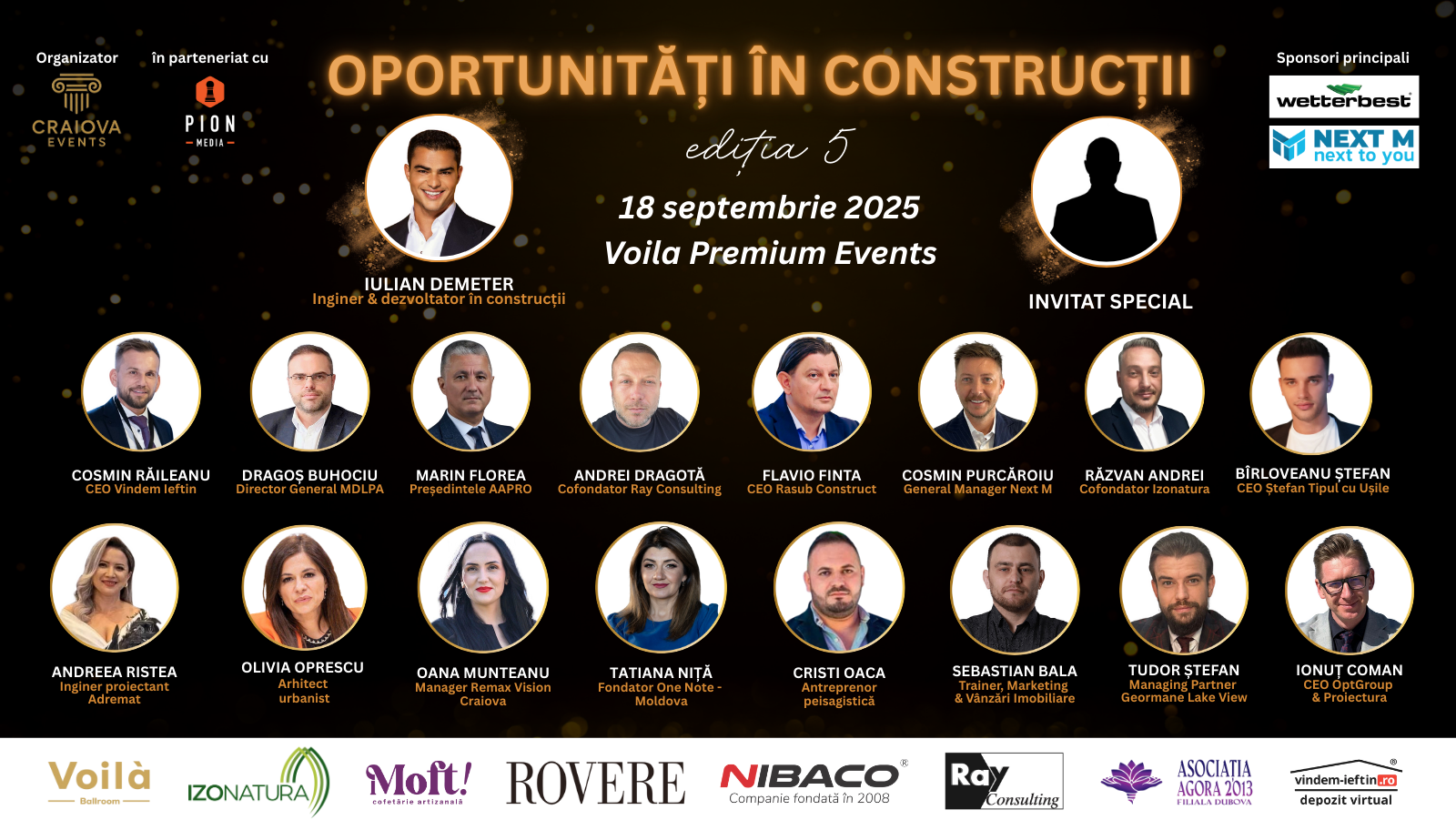 Pe 18 septembrie 2025, la Voila Premium EventsînCraiova, are loc cea de-a cincea ediție a evenimentului “Oportunități în Construcții”, organizat de Craiova Eventsîn colaborare cuPion Media. Evenimentul reunește specialiști din domeniul construcțiilor și imobiliarelor, reprezentanți ai autorităților publice, furnizori de soluții inovatoare și clienți finali, într-un cadru dedicat schimbului de idei, networkingului și descoperirii celor mai bune oportunități din piață.