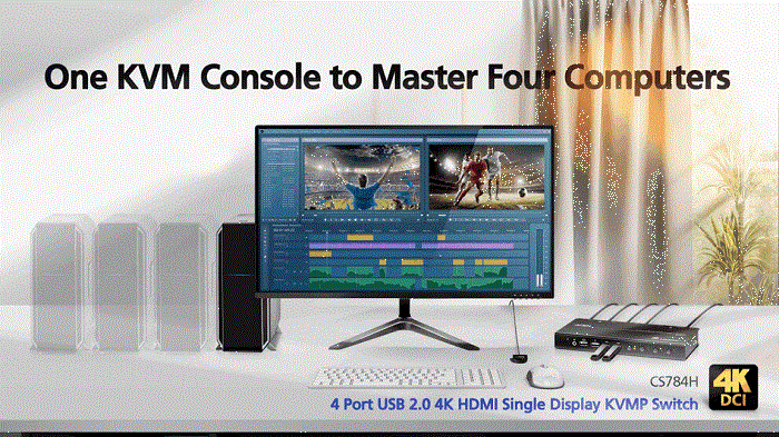 ATEN CS784H este soluția simplă și eficientă pentru controlul a până la 4 calculatoare de pe o singură stație de lucru